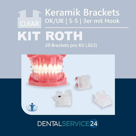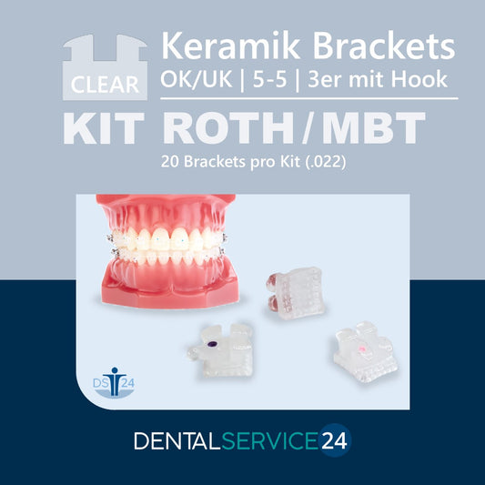 Keramik-Bracket ROTH | .022 5-5 OK/UK | 3er mit Hook | 1 Kit = 20 Brackets
