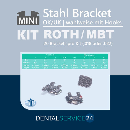 Stahl-Bracket System | MBT / ROTH | 5-5 OK/UK | ohne/mit Hook | .018 .022 | 1 Kit = 20 Brackets