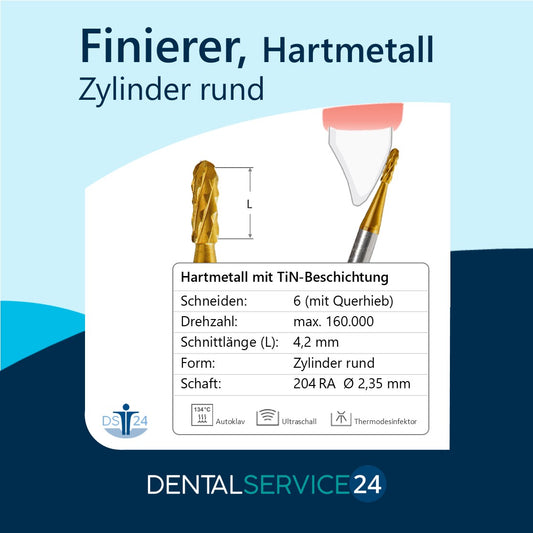 Hartmetall Finierer/Fräser mit TiN Beschichtung -Zylinder- Schaft: 204 RA